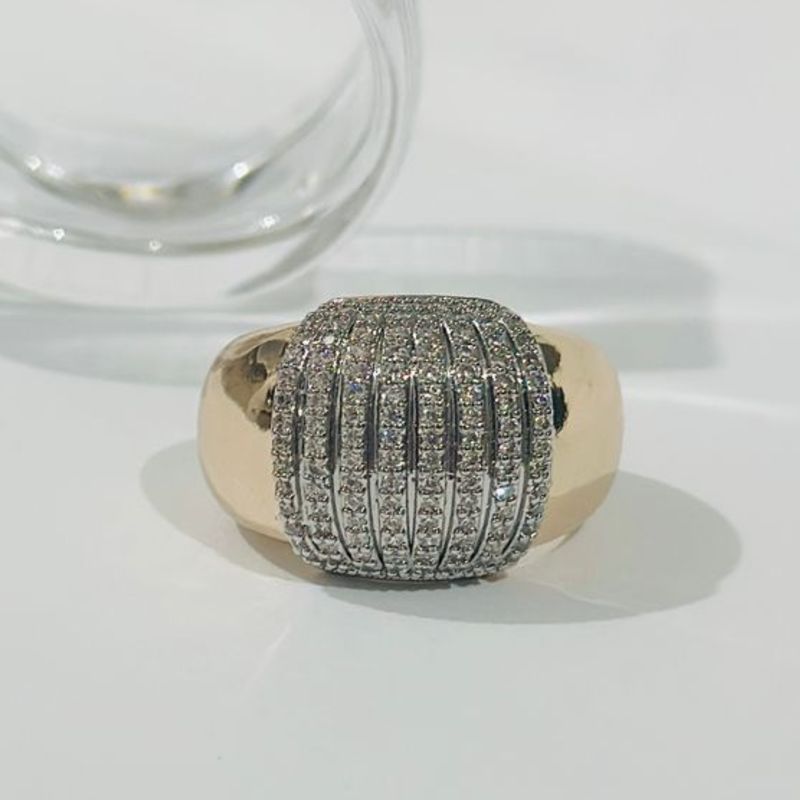 ANEL ARO OVALADO BANHO ROSÊ COM DETALHE CENTRAL EM RÓDIO BRANCO E CRAVEJ. DE ZIRCONIAS Nº 21 18K