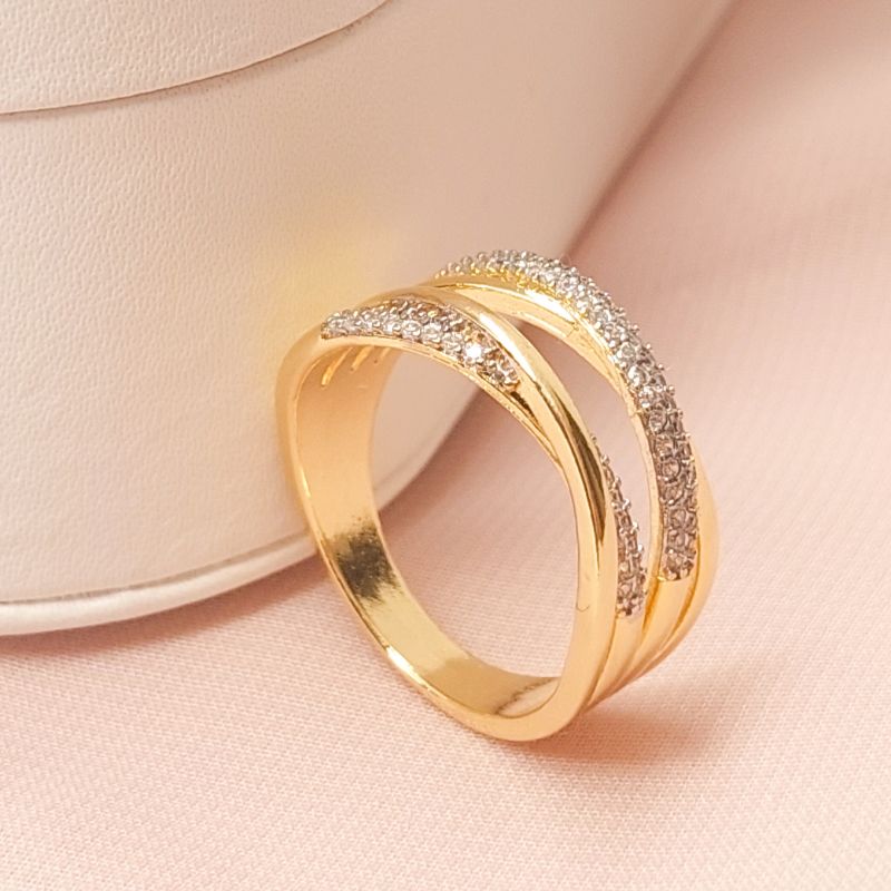 ANEL DUPLO FAIXAS EM X CRAVEJADO EM ZIRCÔNIAS E RÓDIO