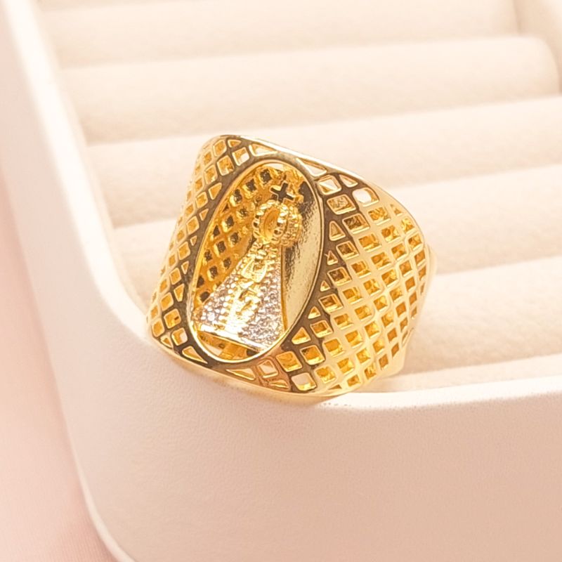 ANEL NOSSA SENHORA APARECIDA CRAVEJADO EM ZIRCÔNIA E RÓDIO