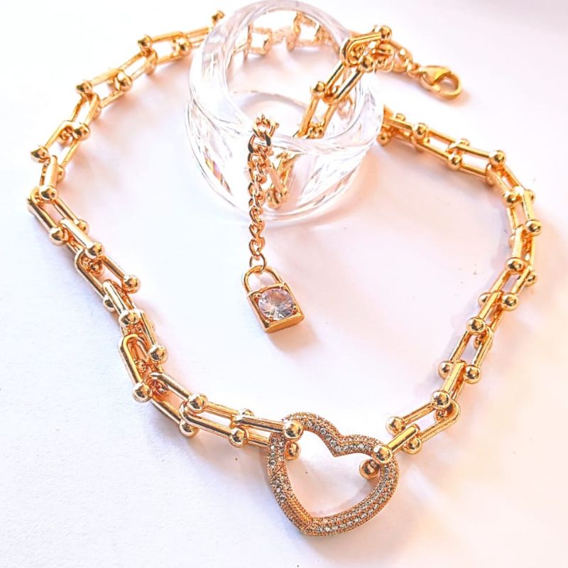 COLAR INSPIRAÇÃO TUFFANY COM FECHO LUXO E PING CORAÇÃO CRAVEJ 45+5CM