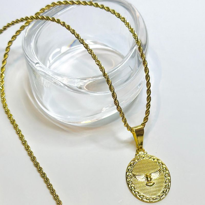CONJ 2PÇ GARG COLAR BAIANO LISO 40CM + MEDALHA ESPIRITU SANTO